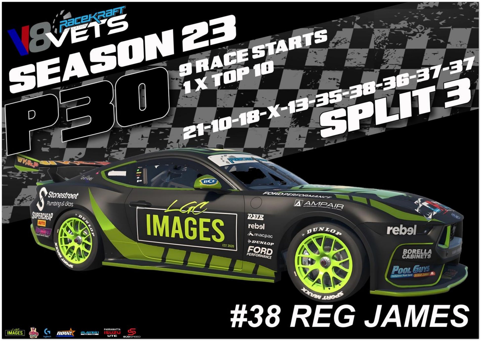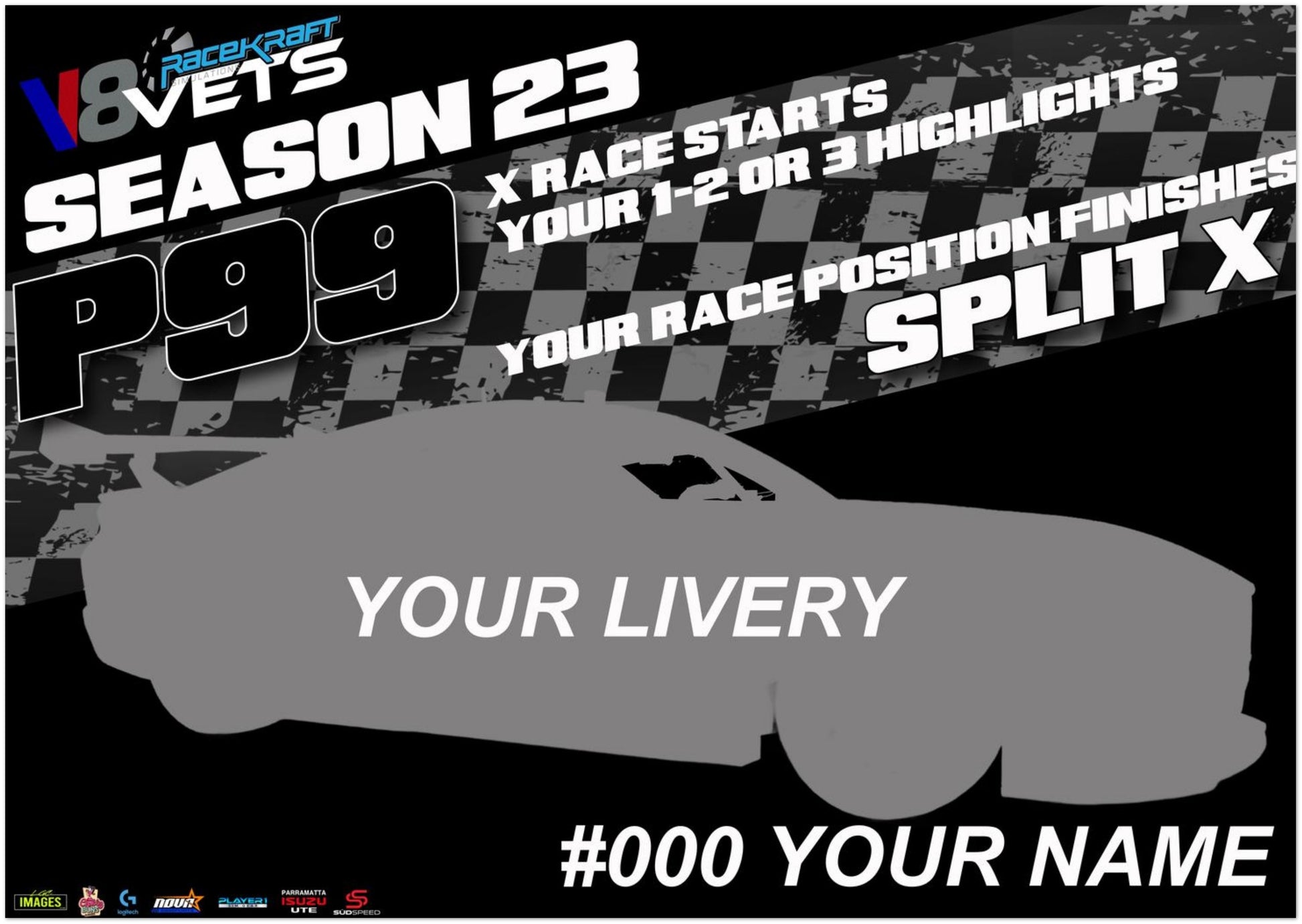 This Season 23 'Driver' Print showcases your Season 23 achievement, highlights and race by race finishing positions.