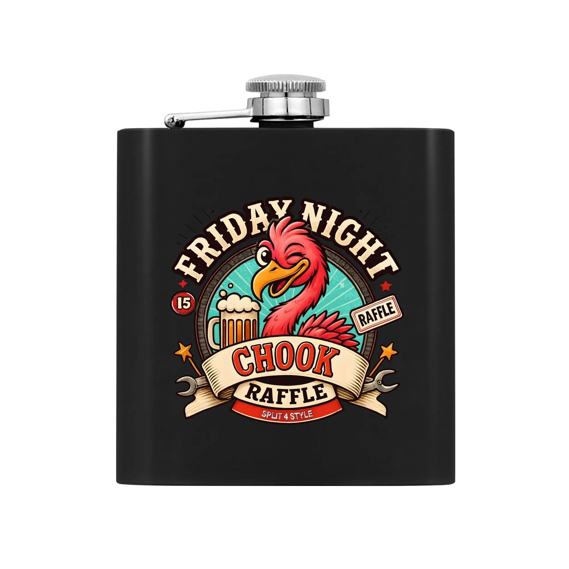 Get ready to impress with the Friday Night Chook Raffle Hip Flask Gift Set! This sleek 7oz stainless steel flask sports a brushed finish and comes with a handy funnel plus two shot cups, all wrapped up in a fancy gift box. Leak-proof and stylish, it’s perfect for sneaking your favorite drink to any event. Made from durable stainless steel, it’s easy to stash in your pocket or bag. Whether you’re camping, at a concert, or just kicking back outdoors, this set has everything you need to share a toast in style!